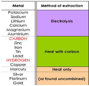 | C1 ORES | Extracting metals: most found as compounds (if unreactive, found as pure metal) |