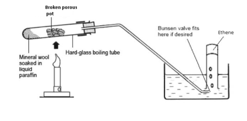 | C1 ALKANES AND ALKENES | Alkenes: unsaturated, have a carbon-carbon double bond Unsaturated: Has a double bond Bromine test: To find out if a liquid contains double bonds, Bromine dissolved in water is orange but becomes colourless when mixed with unsaturated molecules. |