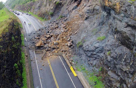 | LANDSLIDE | THE MOVEMENT OF ROCK, DEBRIS OR EARTH DOWN A SLOPE |