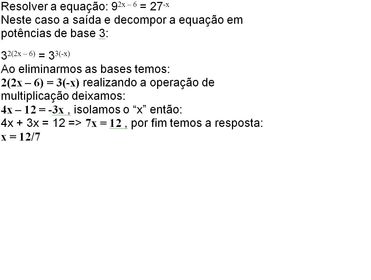 | Equações exponenciais com artifícios | Se você estava achando fácil resolver equações exponenciais elementares, vamos dificultar um pouco a sua vida, trazendo equações onde não seja possível decompor as bases em potências iguais, e nestes casos devemos utilizar certos “artifícios” para assim poder chegar a solução desejada, apesar de serem situações mais complexas, não são difíceis, basta um pouco de atenção, força de vontade e treino para logo começar a dominar a resolução desse tipo de equação. |
