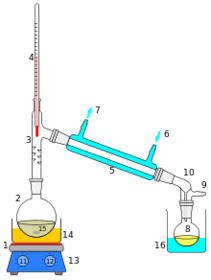 | What is a condenser? | The apparatus which cools the vapour to a liquid. (Ließig condenser) |