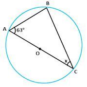 | x = | x = 27 -angle in a semi circle -angles in a triangle |