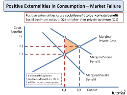 | Positive externalities | This occurs when production and/or consumption create external benefits on third parties outside the market This could lead to market failure due to it being under-provided. |