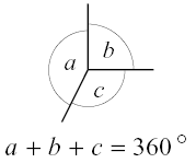 | a + b + c = 360 | Angles at a point add to 360. <'s at pt. |