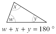 | a + b = c | The exterior angle of a triangle equals the sum of the two interior opposite angles. ext. < of ^ |