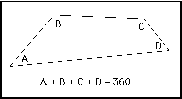 | Interior angles in a quadrilateral add up to 360. < sum of quad. | |
