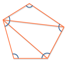 | Sum= 180 x (5-2) = 180 x 3 = 540 | The interior angles of a polygon: Sum= 180 (n-2)*, where n is the number of sides. int. < sum of polygon |