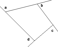 | a + b + c + d = 360 | The exterior angles of a polygon add to 360 ext. < sum of polygon |