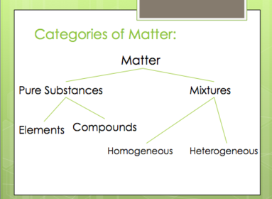 | what are the two different types of mixtures? | 1. Homogeneous Particles are distributed so there appears to be only one substance 2. Heterogeneous Particles are unevenly distributed so you can see more than one substance |