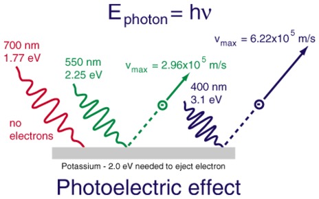 | What is the photoelectric effect? | In the photoelectric effect, electrons are emitted from solids, liquids or gases when they absorb energy from light of high enough frequency. Electrons emitted in this manner may be called photoelectrons. |