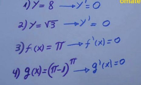 | Resolvendo a primeira regra funcão constante derivada igual a 0 | todo que tenha um numero real e igual a 0 |