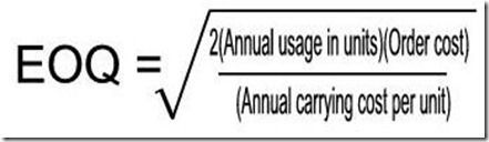 | Formula for EOQ | carrying cost AKA holding cost order cost is the cost per order |