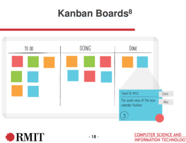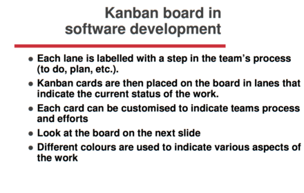 | Kanban boards: - Kanban believes in visual transparency for this reason Kanban boards are used - Its a work and workflow visualisation tool that enables you to optimise the flow of your work - Physical Kanban boards are typically use sticky notes on a whiteboard to communicate status, progress, and issues | |