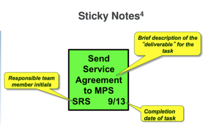 | Stand up meeting - how to? - Should be held before either starting time or before lunch hour - Should last no maore than 1-1.5 minutes times the number of attendees (15 mins max during at first) - Team members with active tasks should attend - Off-site people can "virtual" proces - Overseas people can be connected through designated "liaison" | The meeting leader should ask 3 questions: 1. What progress have you made since the last meeting? 2. How will you work towards your next milestone? 3. What do you need from others to meet this goal? |