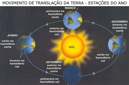 | Entre todos os movimentos realizados pela Terra, a rotação e a translação são consideradas como os dois mais importantes, pois são os que exercem maior influência no cotidiano das sociedades. As consequências principais da translação são: | Ocorrência das estações do ano |
