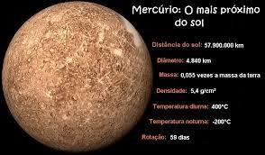 | Planeta mais próximo do Sol, é pequeno, seco e sem ar. Seu campo gravitacional é muito fraco em comparação com a poderosa, atração do sol, não têm atmosfera e não retém qualquer gás. Sem isso, vários meteoros se chocam contra ele. O planeta é: | Mercúrio |