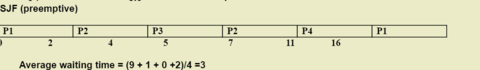 | 7. Preemptive SJF ----------------------------------------------------------- Process | Arrival Time | Burst Time ----------------------------------------------------------- P1 | 0 | 7 P2 | 2 | 4 P3 | 4 | 1 P4 | 5 | 4 ----------------------------------------------------------- Calculate average waiting time. | |