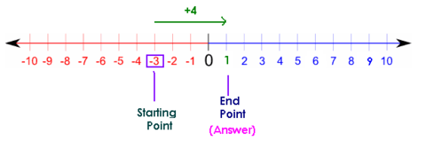 | Using a Number Line to Do Integer Addition | 1) Find the augend (starting value). 2) For a positive addend move right and for a negative addend move left 3) Label your finishing value. |