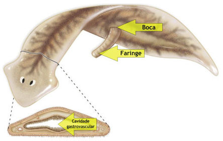 | Se cortarmos uma planária em vários pedaços, cada um irá ser regenerar e dar origem a um novo indivíduo. | OUTROS REPRESENTANTES DO FILO PLATELMINTOS |