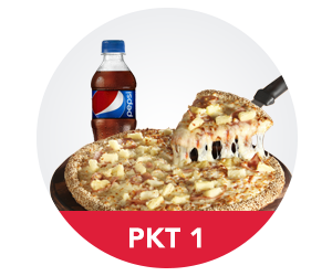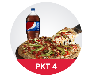 | PKT 1 Pizza chica de 2 ingredientes + 1 refresco de 600ml por sólo $79 pesos. Pizza chica de especialidad + 1 refresco de 600ml por sólo $86 pesos. No aplica en 2×1 ni en conjunto con otras promociones y/o descuentos. Válido sólo en unidades participantes. | |