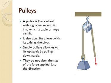 | What is a pulley? and how can we increase the force applied to it? | A pulley is a wheel with a groove around it into which a rope or chain can move. To increase the force applied, more than one pulley must be used. |