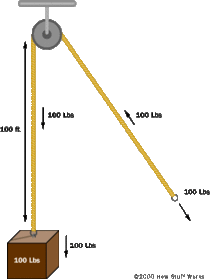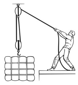 | What is the block and tackle arrangement? | The block and tackle arrangement provide four times the force of a single pulley. |
