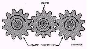 | Idler gear | Positioned between a driving and a driven gear to get them rotating in the same direction. |