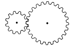 | Bevel gears | Positioned at right angles to each other so that they change the plane of rotation. |