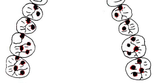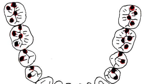 | Teeth with 2 roots | Mandibular molars, maxillary first premolars |