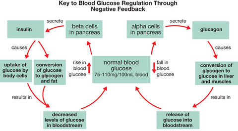 | What are some factors that influence blood glucose concentration? | - Diet - glucose from the hydrolysis of carbohydrates such as starch, maltose, lactose, sucrose - hydrolysis of glycogen in the small intestine (glycogenolysis) - gluconeogenesis - production of glucose from other substances e.g. fats and protein |