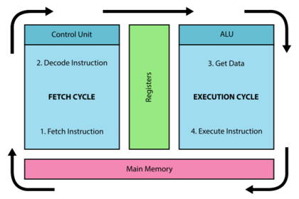 | Fetch - Decode - Execute Cycle | The first step the CPU carries out is to fetch some data and intrustions from the main memory. The CPU uses the address bus. The next step is for the CPU to decode the instructions it has just fetched. Then, the instruction is carried out and executed. |