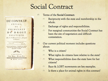 | agreement between the people (the governed) and the government; People agree to give up part of their freedom to govt. in exchange for protection of natural rights. | |