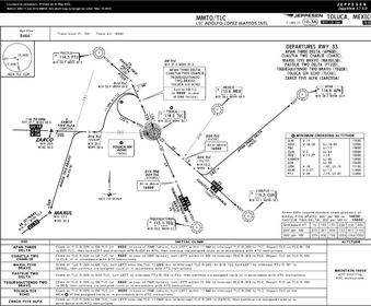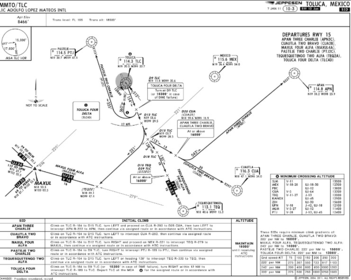 | TLC4D (15) TLC6E (33) | Ascenso VOR Con RWY 15 se utiliza para interceptar UJ12, J42, UJ18. Con RWY 33 se utiliza para interceptar UJ12. Se utiliza para prácticas IFR de aeronaves que no cumplen con el gradiente de ascenso para TEQ. |