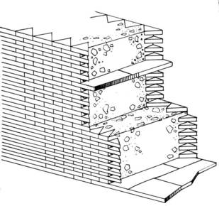 | Roman concrete structures. | faced w/stone or brick covered with plaster. |