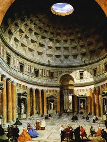 Pantheon. (Rome, Italy) 120 CE. one of most influential Roman buildings. combines columned porch w/great dome. |