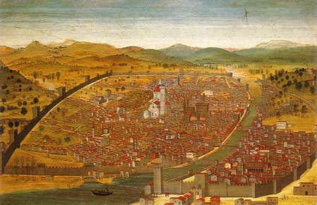 | Florence, Italy. | former Roman colony. develops as center for wool, banking, + other trades. Recognized as commune in 1183. center for art, architecture, + other architectural fields. |