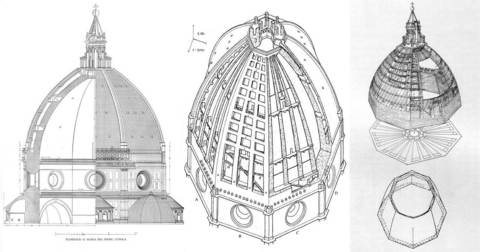 | "Who could ever be hard or envious enough to fail to praise Pippo the architect on seeing here such a large structure, rising above the skies, ample to cover with its shadow all the Tuscan people, and constructed without the aid of centering or great quantity of wood?” | artist + scholar Leon Battista on Brunelleschi's work |