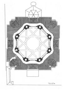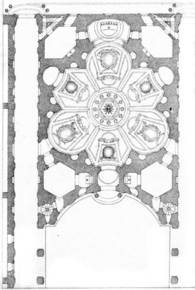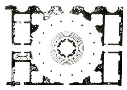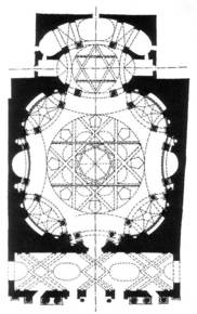 San Lorenzo floor plan. (Turin, Italy) Guarino Guarini. Note: plan becomes more regular @ higher levels, piers supporting dome supported by arches. |