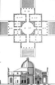 Villa Rotonda floor plan + section. (Vicenza, Italy) Andrea Palladio. |