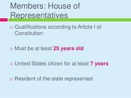 | Qualifications for the HOR | 1. must be at least 25 years old 2. a US citizen for at least 9 years 3. live in the district they represent |