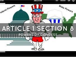 | Article 1, Section 8 | lists 18 powers given to the Congress |