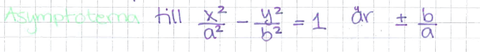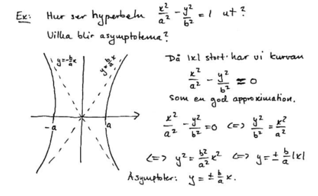 | Hur ser hyperbeln x^2/a^2 - y^2/b^2 = 1 Vilka blir asymptoterna? | |