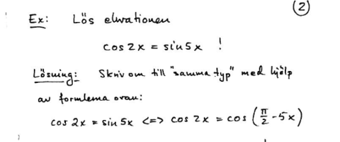| skriv om cosx som sinx | sin(pi/2-x)=cosx |