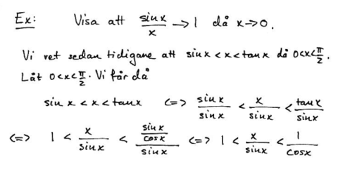 | Visa att sinx/x --> 1 då x--> 0 | |
