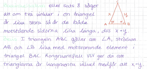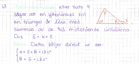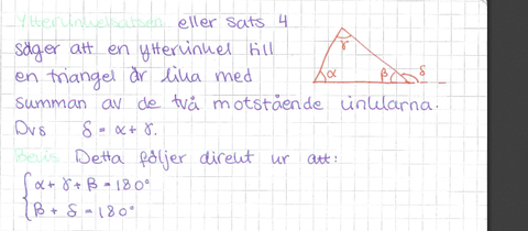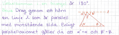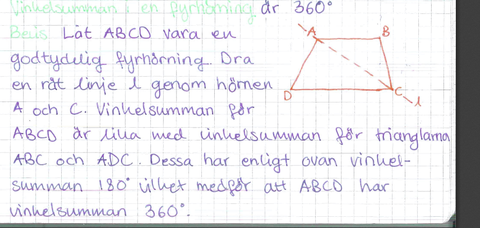 | vad är vinkelsumman i en triangel respektive fyrhörning? ge bevis | |