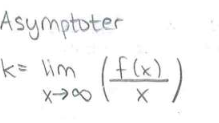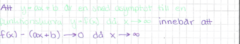 | att y=ax+b är en sned asymptot till en funktionskurva y=f(X) då x-->inifnity innebär att f(X)-(ax+b) --> .. då x--> infinity | |