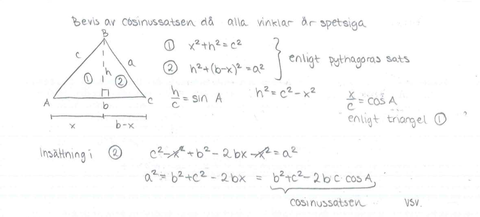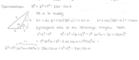 | bevis av cosinussatsen då alla vinklar är spetsiga | |