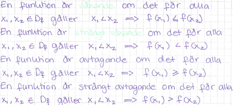 | när är en fuktion växande, strängt växande, avtagande, strängt avtagande | |