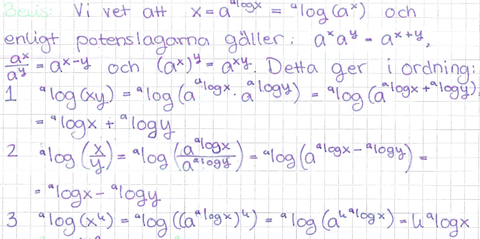| Bevis för loglagarna: alogx+ alogy alog x-y alogx^y | |