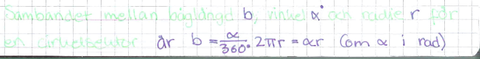 | För en cirkel. sambandet mellan bågläng b, vinkel och radie r? | |